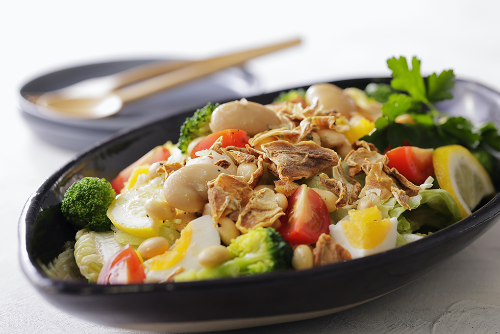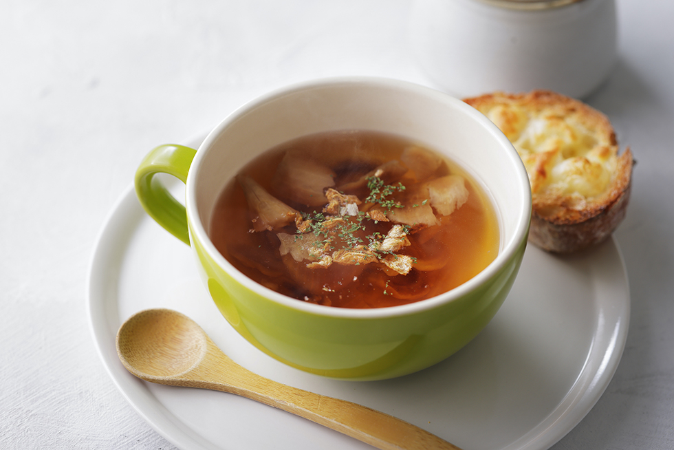 カップに本品、顆粒コンソメを適量入れ、沸騰したお湯をそそいで3分で出来上がり。